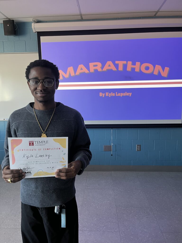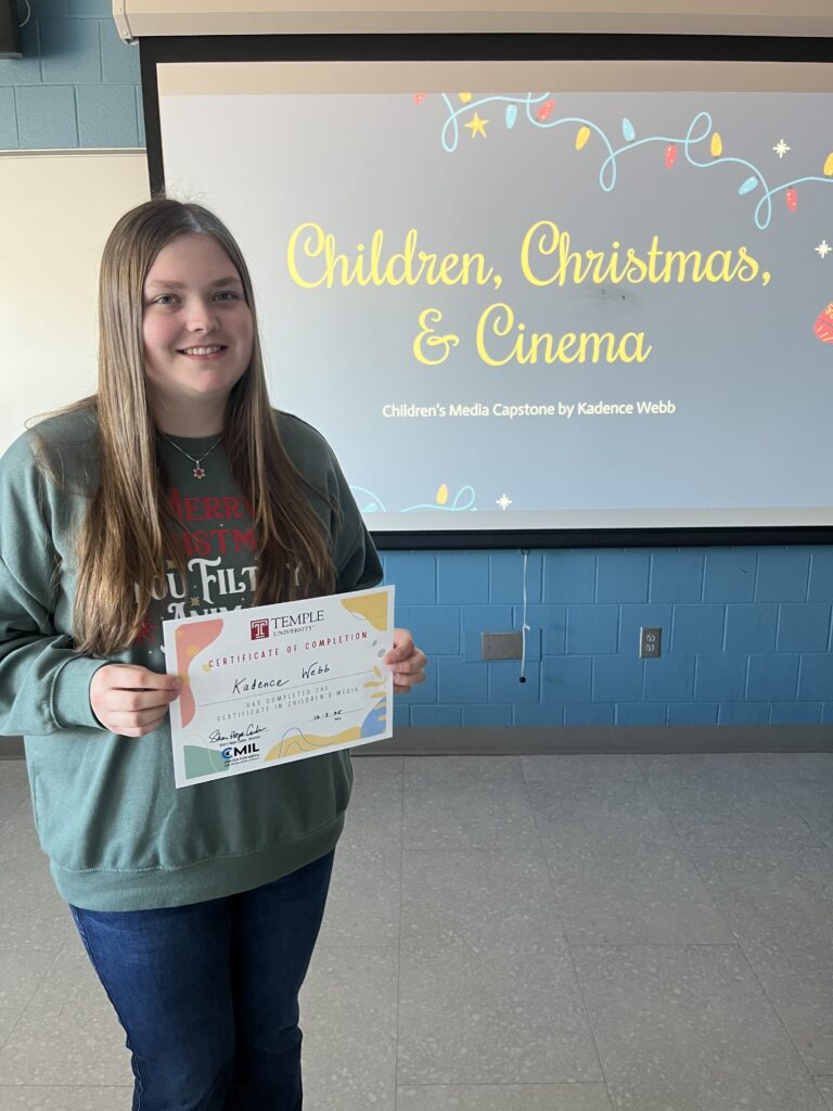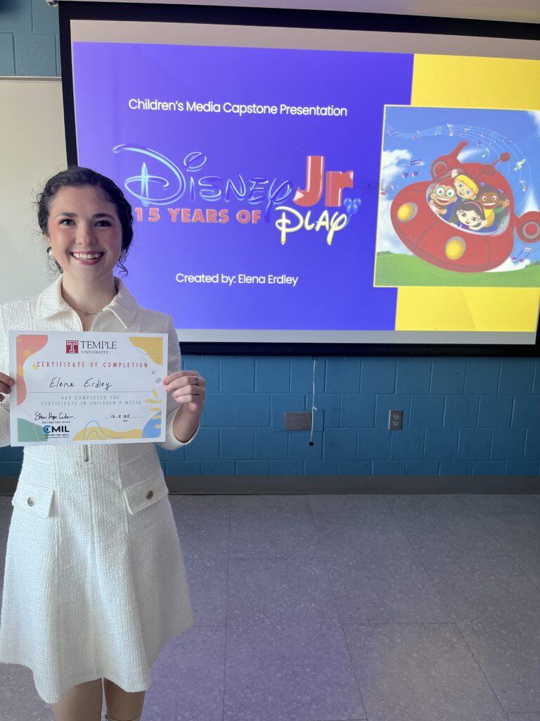 On December 3rd, 2025, from 10:30 a.m. to 12:00 p.m., five students presented their capstone projects for the Certificate in Children’s Media in Tuttleman Hall, Room 305B. Eleanor Erdley, Cadence Webb, Kyle Lapsley, Delia Joyce, and Ollie Gomez each applied the skills and knowledge they gained throughout the certificate program to create innovative projects. From immersive campaigns and podcasts to animated series, television shows, and interactive live events, their was a diverse group of capstones projects.